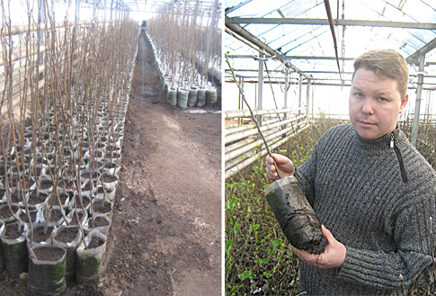 Роман Завитухин с однолетними саженцами яблонь