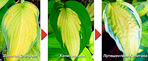 Ее получение было непростым. Все началось с хосты Форчуна и ее вариации Гиацинтина (Hyacinthina) с золотистыми листьями - Золотой стандарт, имеющими зеленую кайму по краю. От нее был получен сорт Капитан Кирк с еще более широкой зеленой зоной на листе, более мощными листьями и сильной энергией роста, что сделало этот сорт очень популярным. И вот от такого замечательного родителя появилась хоста Путешествие Капитана.